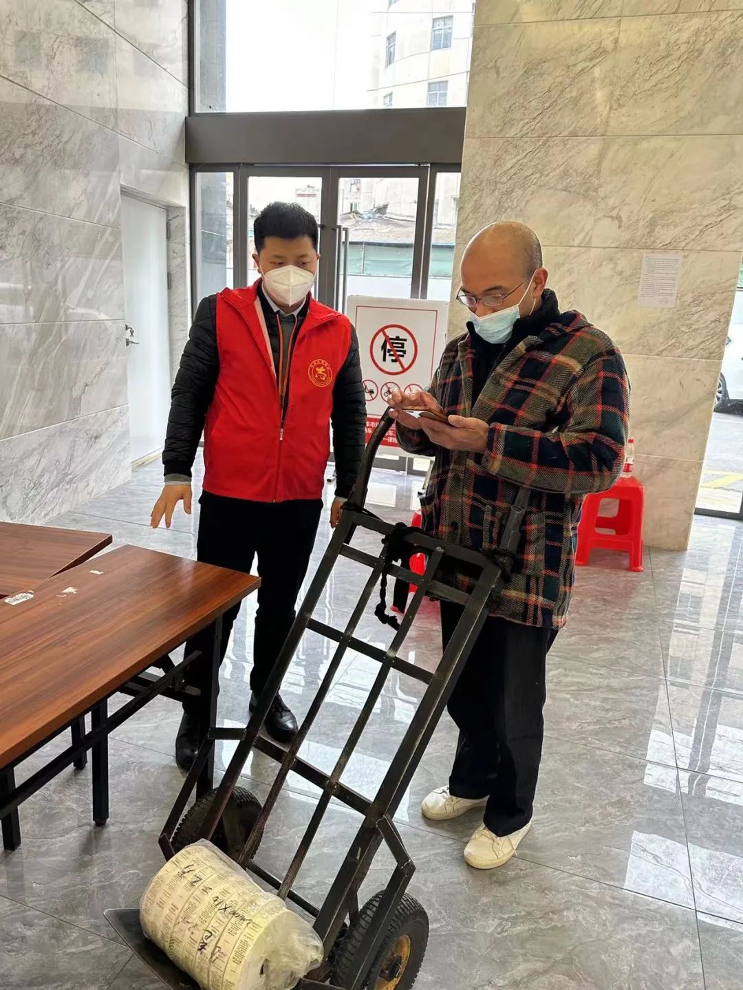 ? ? ? ?“您家需不需幫忙啊?我們來幫您把貨裝車!”30日上午,武碧綜發公司黨員在漢正街道藥王社區和永茂社區值守,粟君、王夢瓊、田志敏三位黨員同志看到運貨的人都會問上一句,搭把手。??